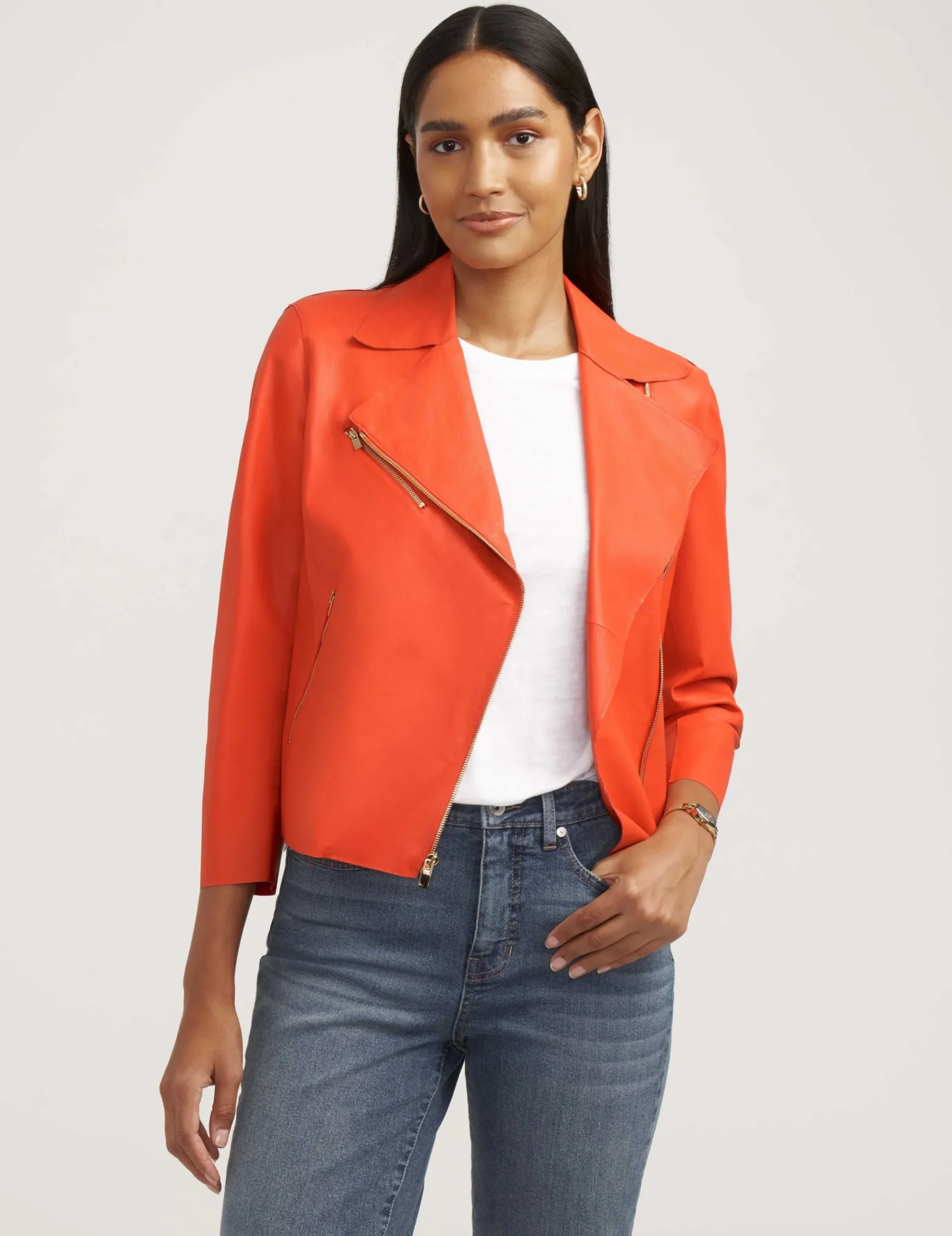 Our Faux Leather Moto Jacket will create an edgy look every time you wear it.